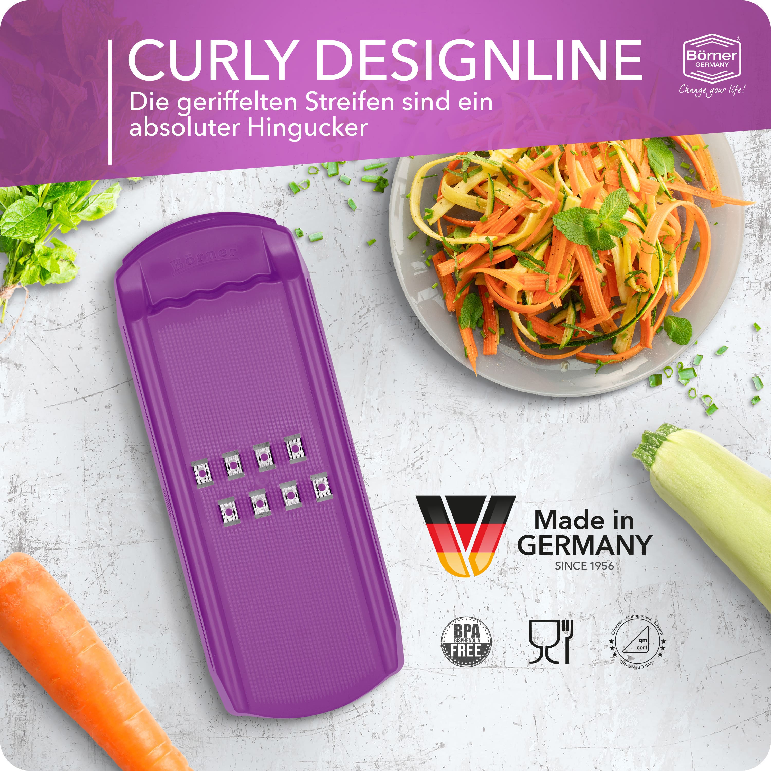 Die Curlyreibe von Börner ist ein super Küchenhelfer. Sie erspart viel Zeit und macht Gemüseschneiden supereinfach!