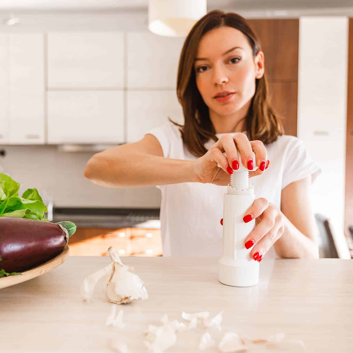 Mit der Knoblauchpresse Mr. Garlic bereiten Sie Knoblauch nun nahezu geruchslos zu, zerkleinern ihn und können ihn direkt aufbewahren.