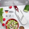 Kombinieren Sie den Multi Griff mit dem Multi Slicer Aufsatz und schon haben Sie den kleinen perfekten Scheibenschneider. Durch den besonders handlichen kleinen Griff ist der Mini Hobel so einfach in der Handhabung. Schneiden Sie ganz einfach dünne und dicke Scheiben durch einfaches Verstellen der Schnittfläche. So können Sie ganz schnell leckere Rohkostsalate oder Aufläufe herstellen. Außerdem hat der Multi Slicer eine integrierte Sicherheitsstufe, so werden die Klingen und Hände beim Verstauen sicher geschützt.