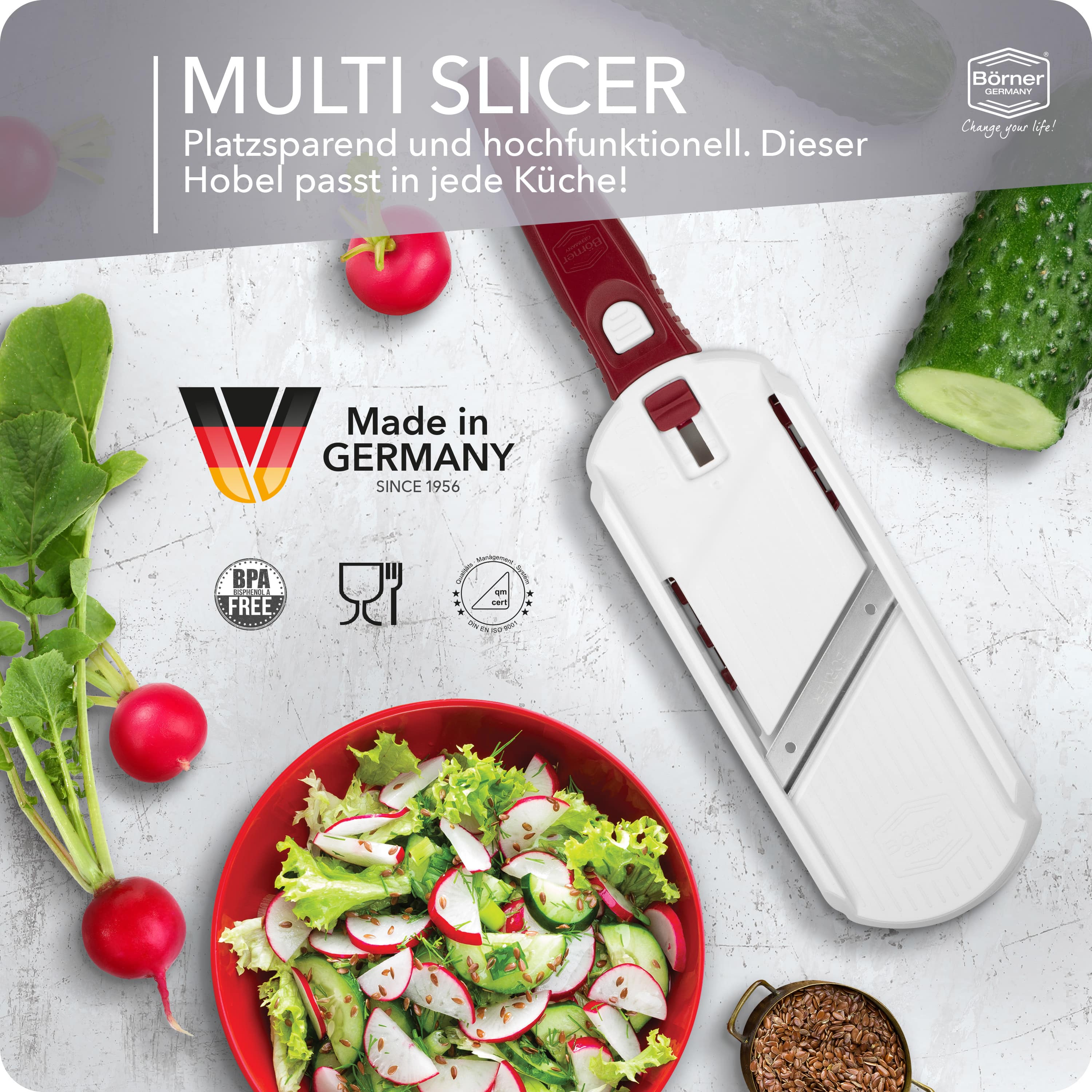 Wir sind der Meinung, ein handlicher Gemüseschneider sollte in jeder Küche zu finden sein, egal ob groß oder klein. Dafür haben wir nun eine platzsparende Lösung entwickelt – lernen Sie den Börner Multi Slicer Gemüseschneider kennen.