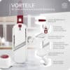 Der Gemüseschneider bietet durch seine Steckfunktion, mit der Sie die Schneidaufsätze ganz einfach austauschen können, die Möglichkeit, supereinfach zwischen mehreren Varianten des Schneiders zu wechseln. Erweitern Sie den Multi Slicer mit seinen Zubehörteilen, wie dem Multi Dicer zum Würfel und Streifen schneiden oder den Multi Peeler Aufsätzen zum Herstellen von Juliennestreifen oder für einfaches Schälen.