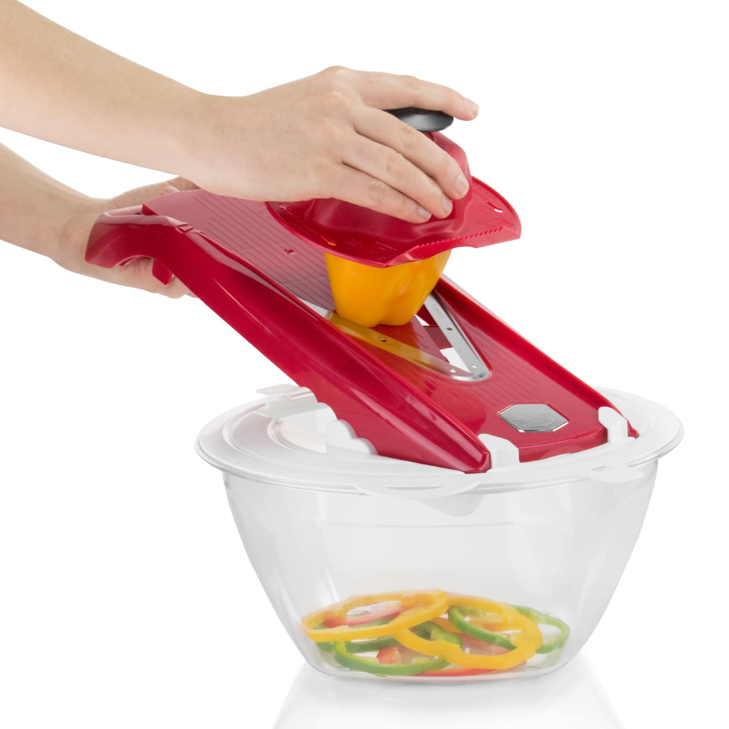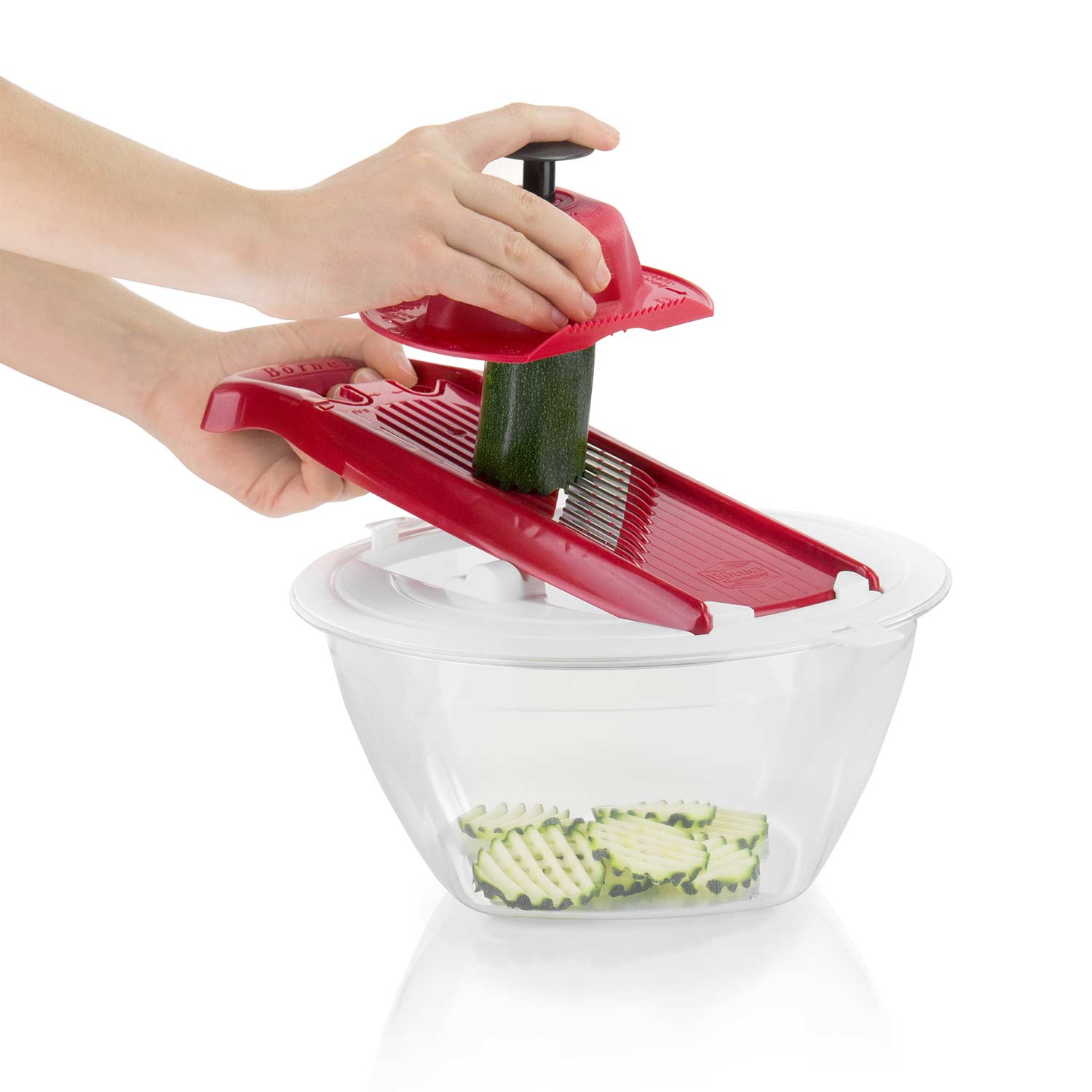 Diese praktische Schüssel eignet sich optimal zum Auffangen des Reibguts für unseren V5 PowerLine Gemüsehobel und alle Reiben der PowerLine verwenden. Dazu gehören unsere Reibe, die Welle-Waffel Reibe, die Roko Reibe sowie unser Rösti.